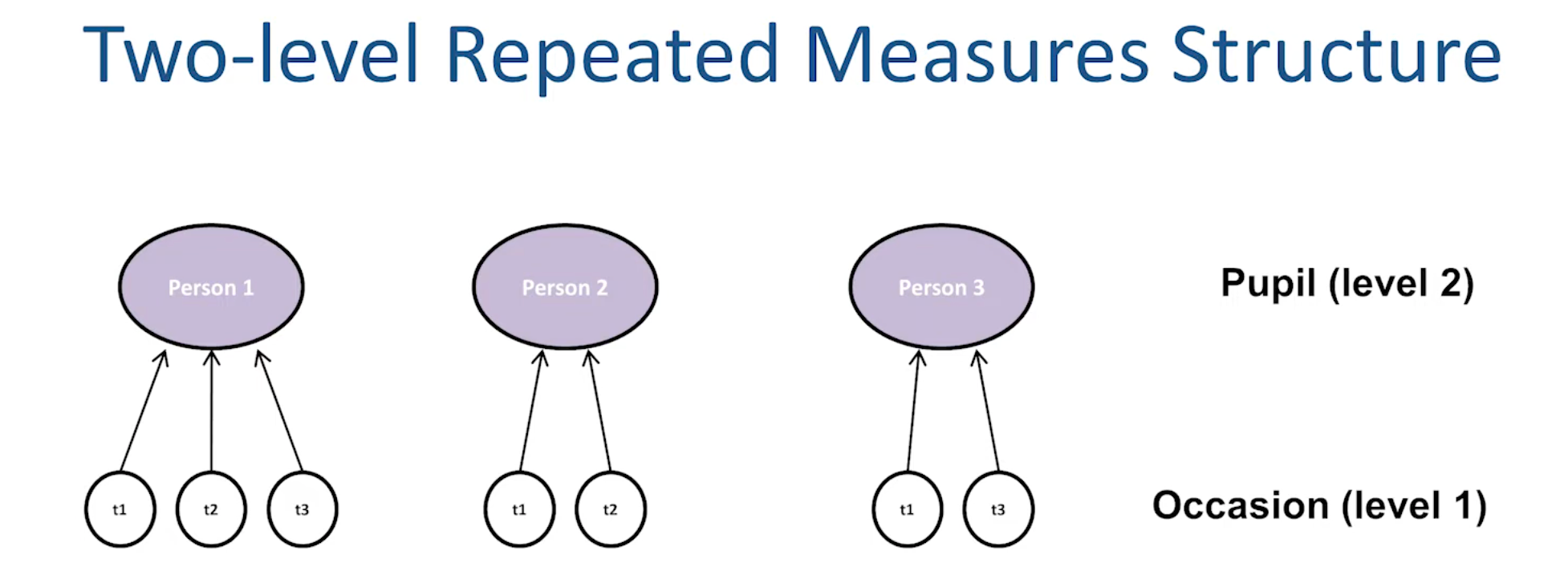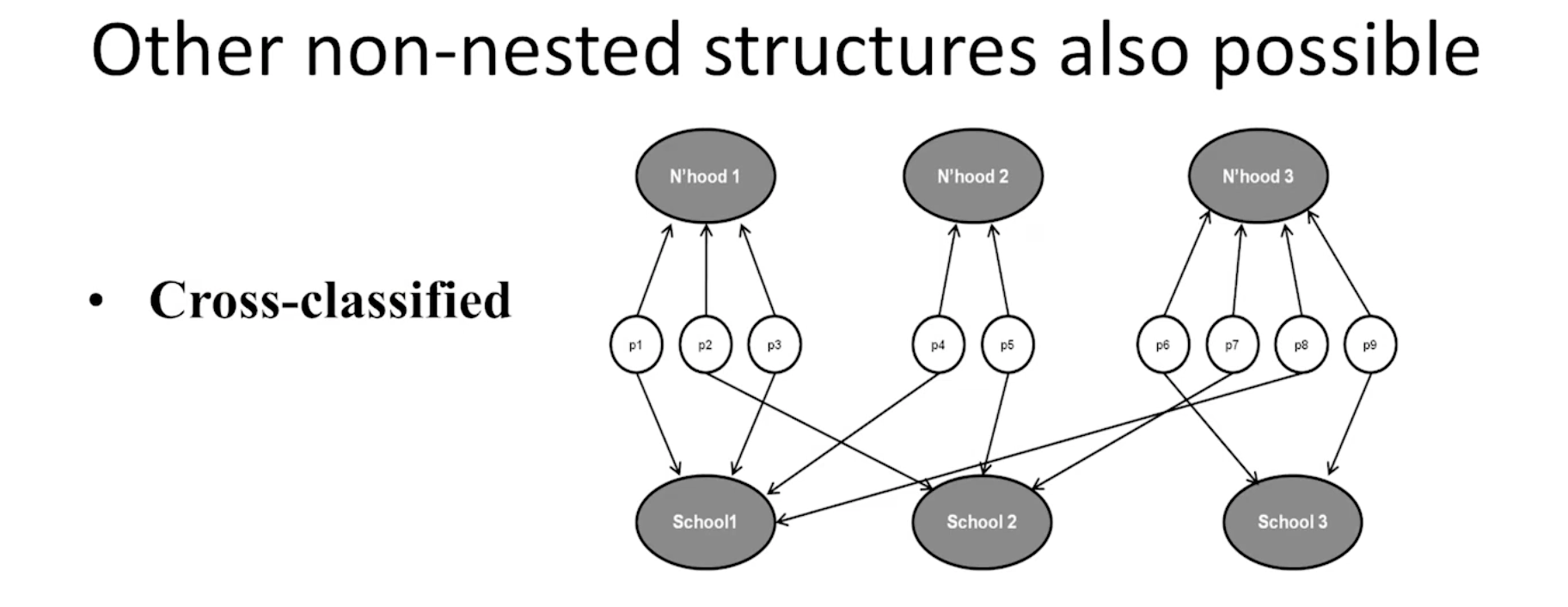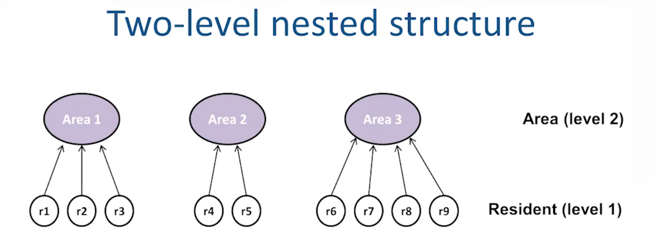 First and foremost, the data must have a multilevel (or hierarchical) structure. Here are three examples (see following figures). However, almost all data can be conceptualized as multilevel to some extent. For instance, in social surveys, respondents are typically classified into two gender groups—male and female—and each individual belongs to one of these groups. Thus, “multilevel regression deserves to be the default form of regression” (McElreath, 2020, p. 15). For convenience, we refer to Level 1 as the individual level and Level 2 as the group level.